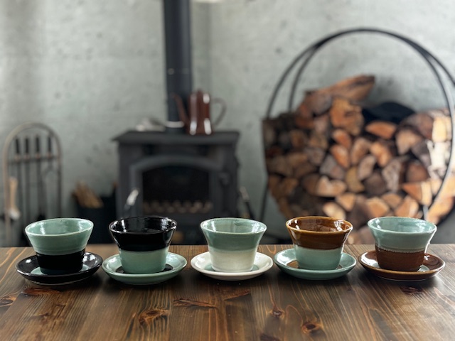 道祖土和田窯の「2tone」シリーズは益子焼伝統釉薬4色を使用したモダンでスタイリッシュなデザインで、今回当館でご用意しているカップ&ソーサーセットはオーベルジュ ブエナビスタオリジナル商品です。